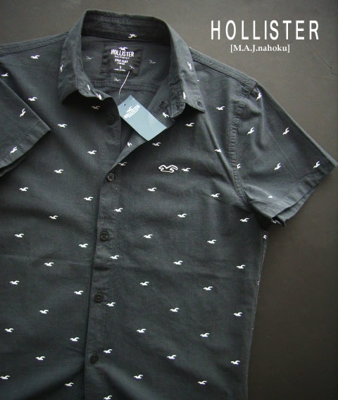 2651新品★ホリスター HOLLISTER★ロゴロゴ半袖シャツ3201★黒系★S★MENS★