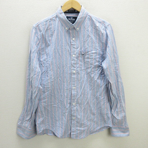z■ホリスター/HOLLISTER 長袖BDシャツ ストライプ柄【S】青系/MENS/77【中古】■