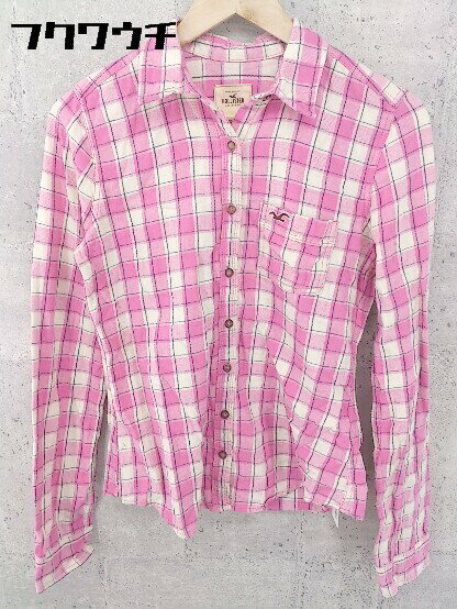 ◇ HOLLISTER ホリスター チェック 長袖 シャツ S アイボリー系 ピンク レディース 【・・・