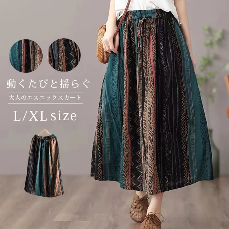 スカート マキシスカート ロングスカート エスニック柄 8色 ペチコートあり レディース 涼しい A・・・