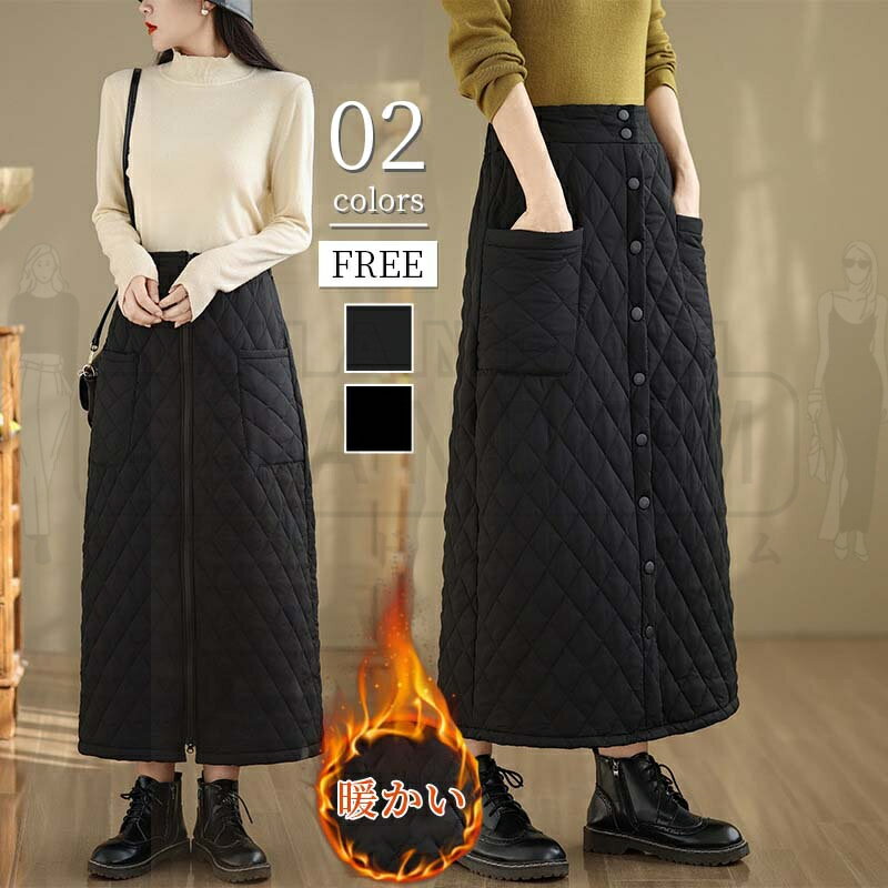 送料無料 冬服 ロング キルティングスカート ロングスカート 綿 レディース 中綿ロングスカート ラ・・・