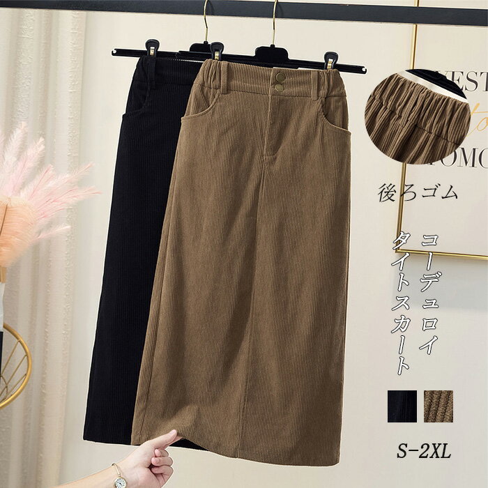コーデュロイ スカート 秋冬 レディース 無地 マキシスカート タイトスカート ロングスカート 裏起・・・