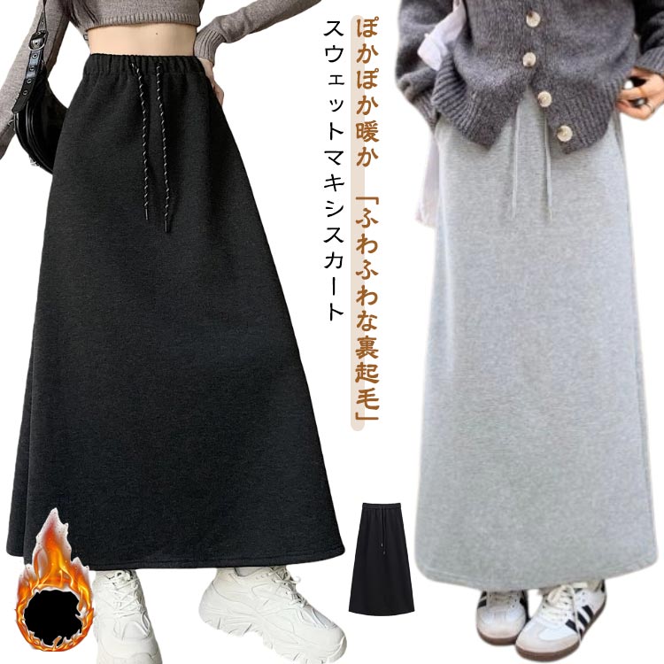 マキシスカート ロングスカート 秋冬スカート マキシ丈 スウェット 厚手 暖かい フレア Aライン ・・・