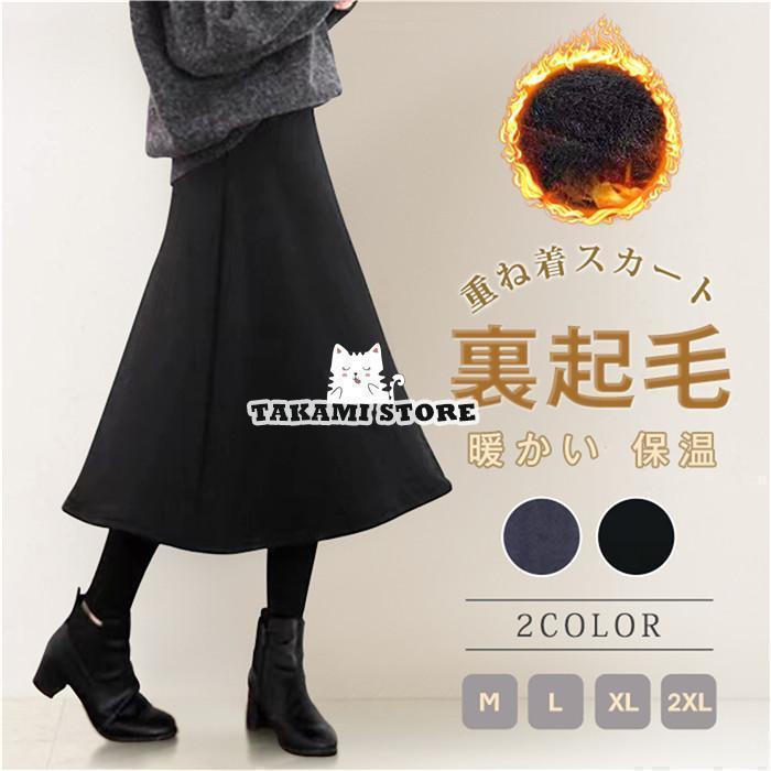 スカート ロングスカート 裏起毛 レディース ロング マキシスカート 膝下 ストレート ウエストゴム・・・