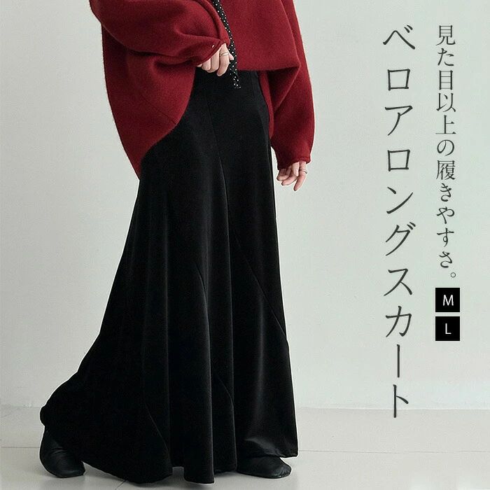 ベロア ロング スカート レディース ボトム ロングスカート フレアスカート ベルベット フレア 落・・・