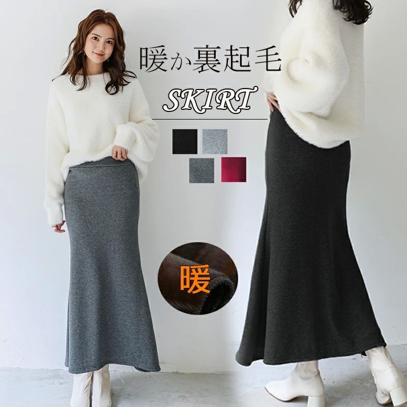防寒 起毛スカート ロング丈 裏ボアスカート グレーおしゃれ 裏起毛 ボトムス 暖かい マーメイド ・・・