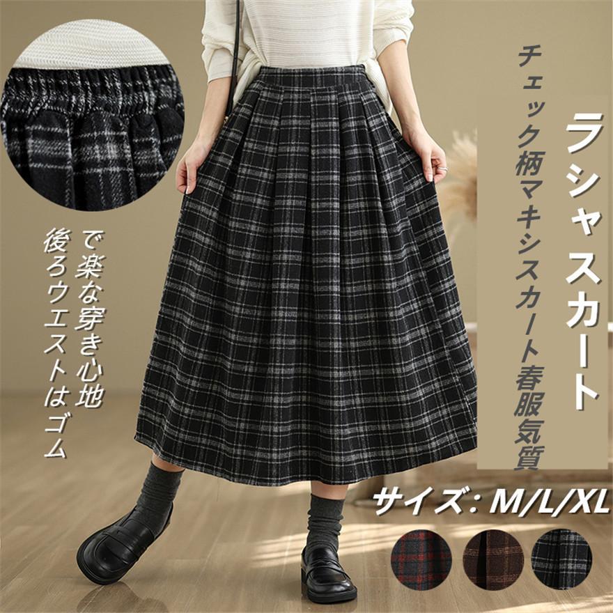 ラシャスカートマキシスカート チェック柄 ハイウエスト暖かいラシャスカート 気質オシャレファッション・・・