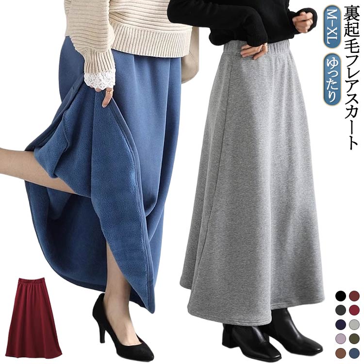 スカート ロング丈 Aライン あったか フレアスカート スカート 秋冬 ロングスカート 温か マキシ・・・