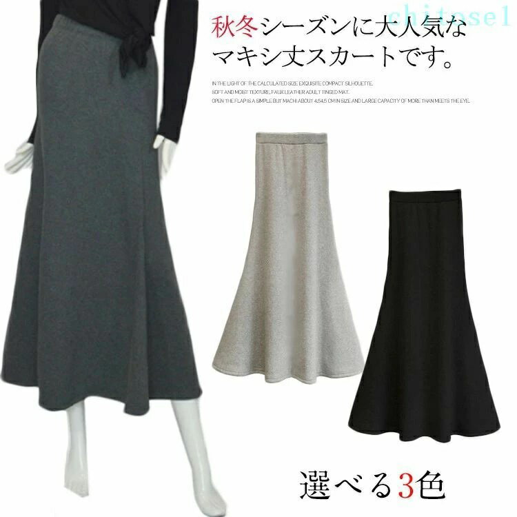 ファッション 無地 マキシ丈 秋 冬 秋冬 暖かい フレア ロング スカート ポケット付き マキシス・・・