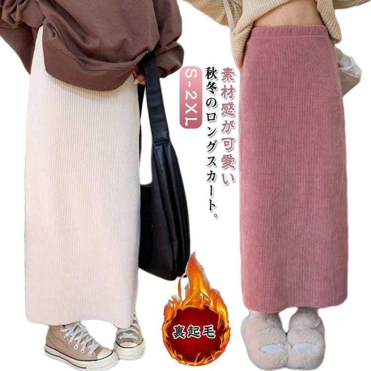 スカート 裏起毛 極暖 秋冬用 防寒 ロングスカート ウエストゴム ストレートシルエット コーデュロ・・・