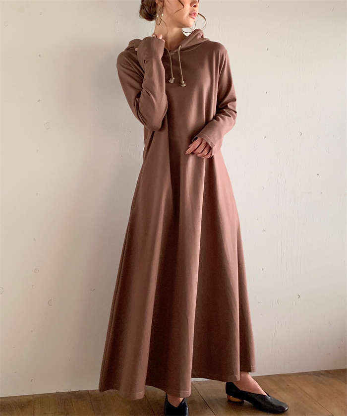 ワンピ パーカーワンピース マキシワンピ 長袖 マキシ丈ワンピース 裏起毛 フード パーカー スウェ・・・