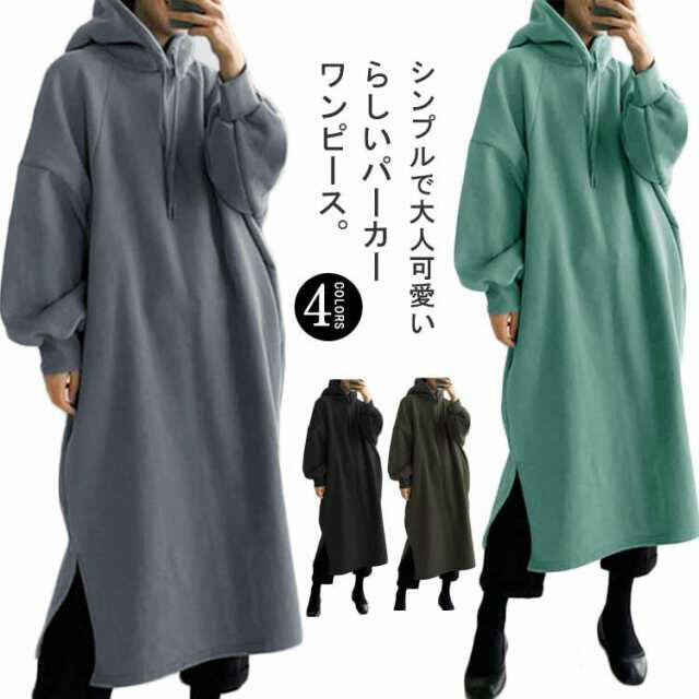 ロングワンピース 秋冬 ワンピース パーカー 裏起毛 スリットワンピース おしゃれ パーカーワンピー・・・