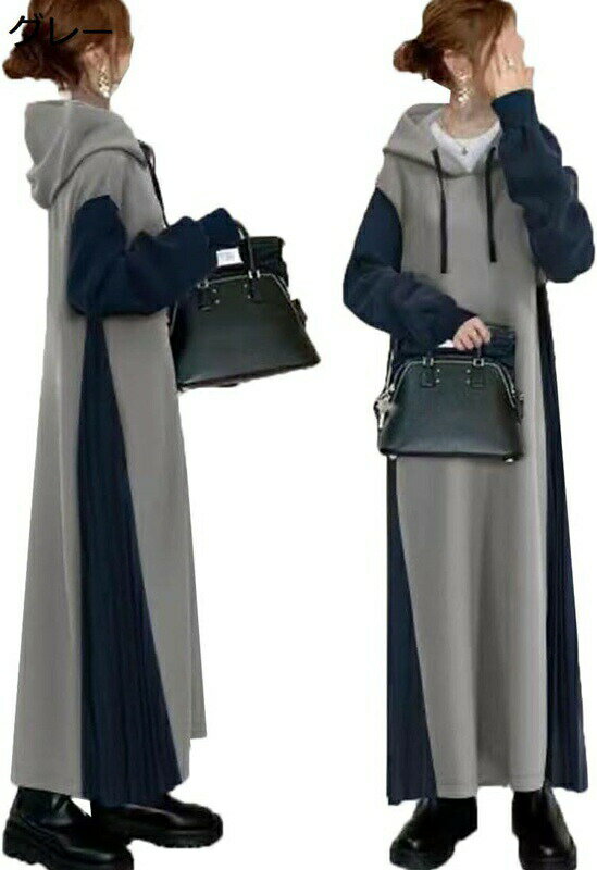 【】マキシ丈ワンピース スエットワンピース 長袖 スウェット ロングワンピース パーカーワンピース ・・・