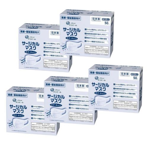 【5箱計250枚】大王製紙 エリエール サージカルマスク スマートタイプ ふつうサイズ 50枚入り ・・・