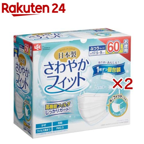 さわやかフィット 日本製 不織布マスク ふつう 個包装 JIS規格適合(60枚入×2セット)【レック・・・