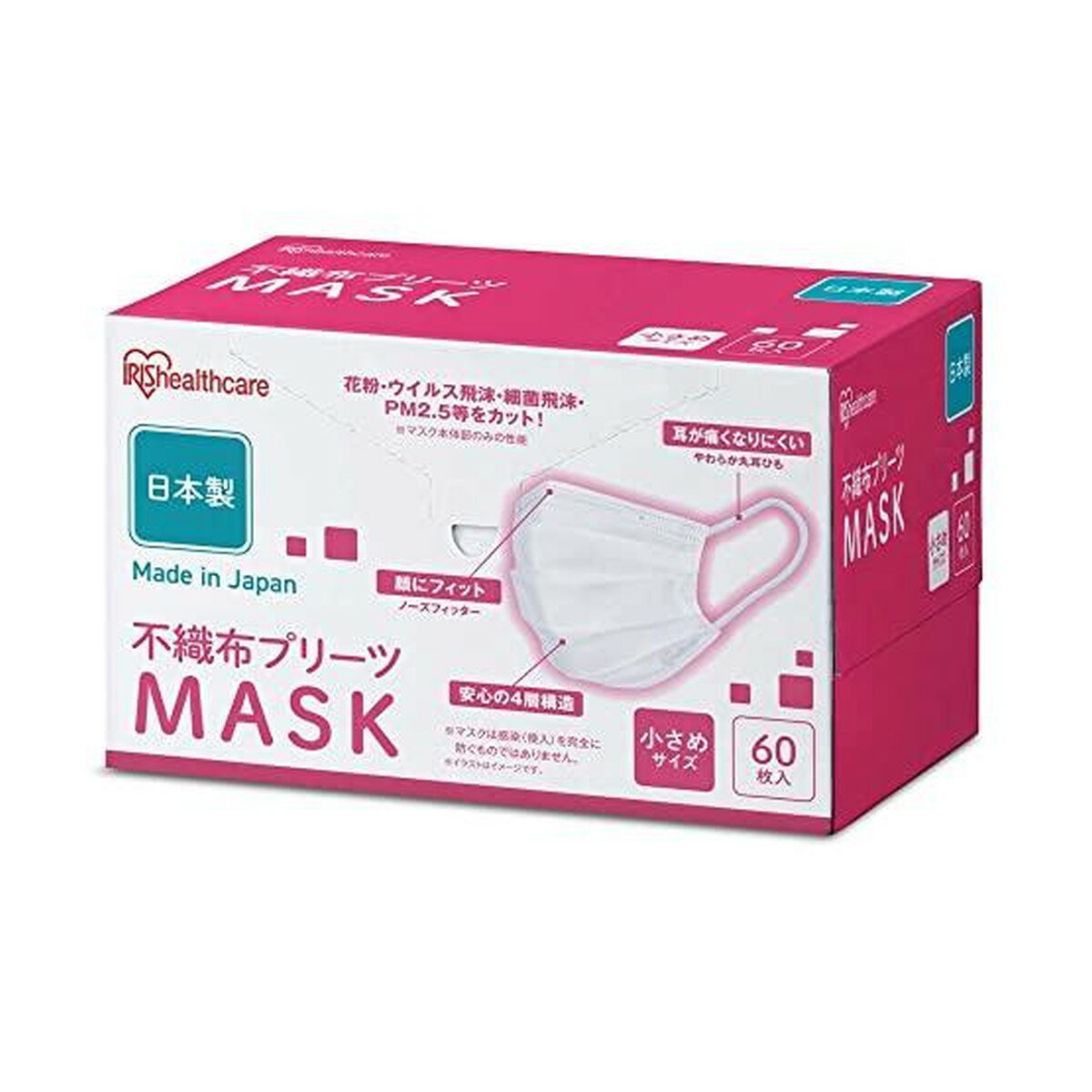 アイリスオーヤマ 不織布プリーツマスク ホワイト 小さめサイズ 60枚入
