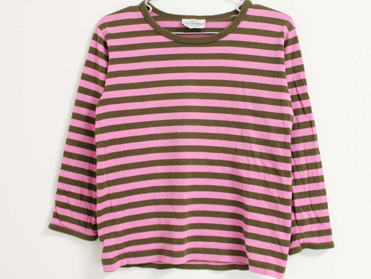 【値下げ!】マリメッコ 長袖カットソー 104-110cm キッズ 男児 女児 ピンク×カーキ【中古・・・