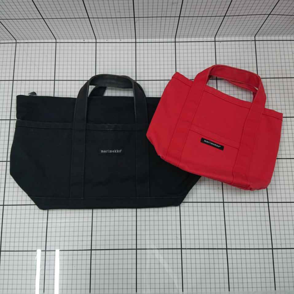 ◇ Θ 《 marimekko トートバッグ ブラック系×レッド系 キャンバス 2点セット レディー・・・