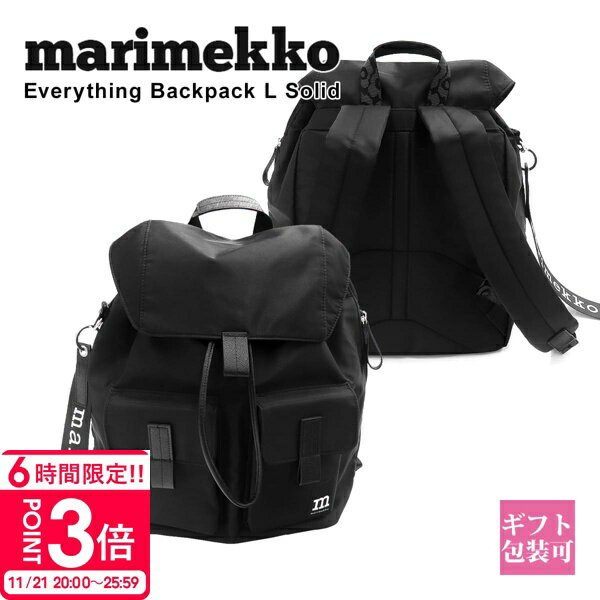 【ショッパー特典付】 マリメッコ バックパック エブリシング L 無地 ブラック 黒 marimek・・・