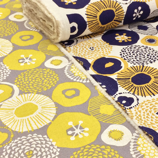 【10cm単位】生地 マリメッコ風 北欧風 インクブルーの花 綿麻 キャンバス 布 グレー 生成り ・・・
