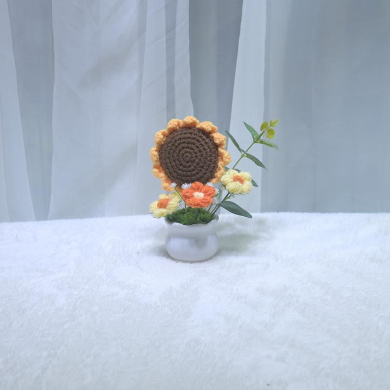 造花 ひまわり 毛糸編み 手編み ミニ盆栽 鉢植え インテリア 置物 雑貨 デスク オフィス リビン・・・