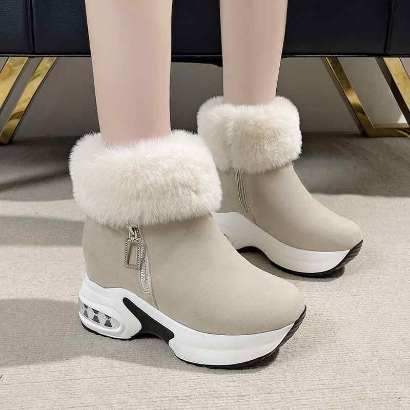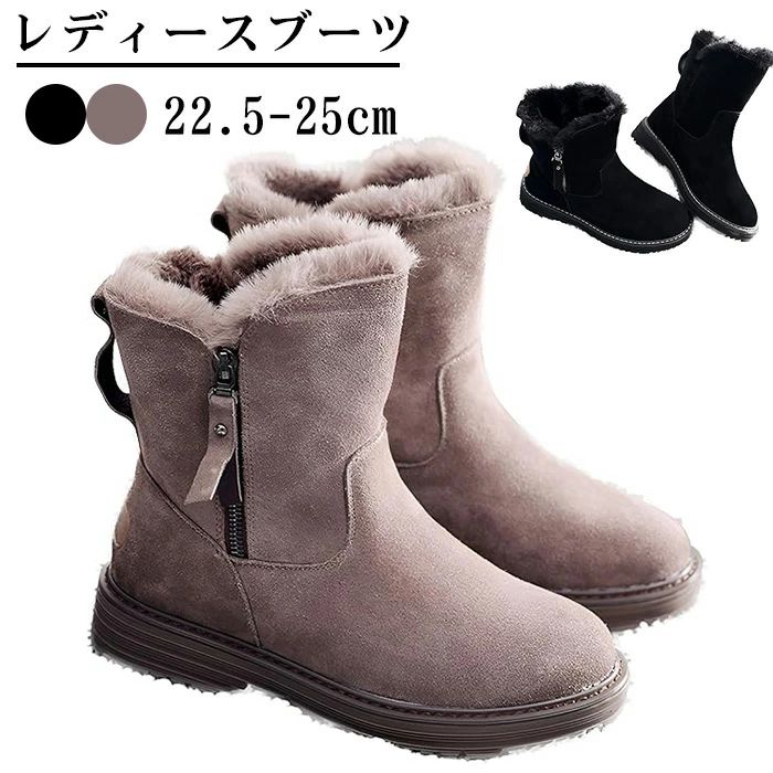 女性 スノーブーツ ショート丈 ファー付き 暖か 保湿 増高インソール コットン内張り スエード 表・・・