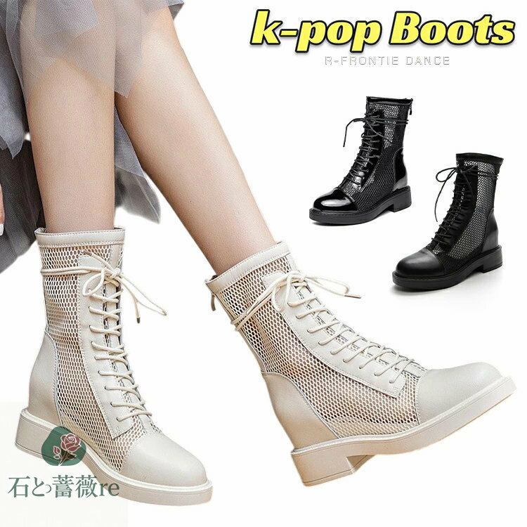 ショートブーツ メッシュ 夏 k-pop ダンスブーツ 韓国 アイドル 黒 ブーツ 白 ヒップホップ・・・