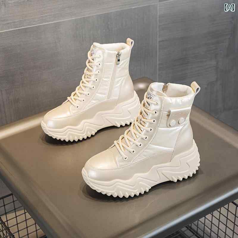 スノーブーツ レディース ハイカット 厚底 プラットフォーム 保温 カジュアルシューズ 合成革 ラウ・・・