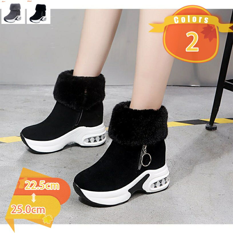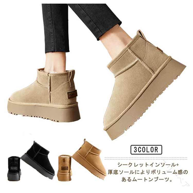 シークレットインソール入りムートンブーツ レディース厚底撥水スノーブーツショート丈ショートブーツ防寒・・・