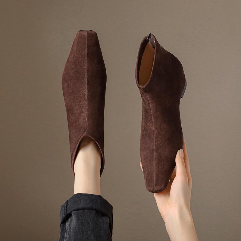 ショートブーツ レディース 女性用 スクエアトゥ スエード ウェッジヒール スキニーブーツ 秋 ミド・・・