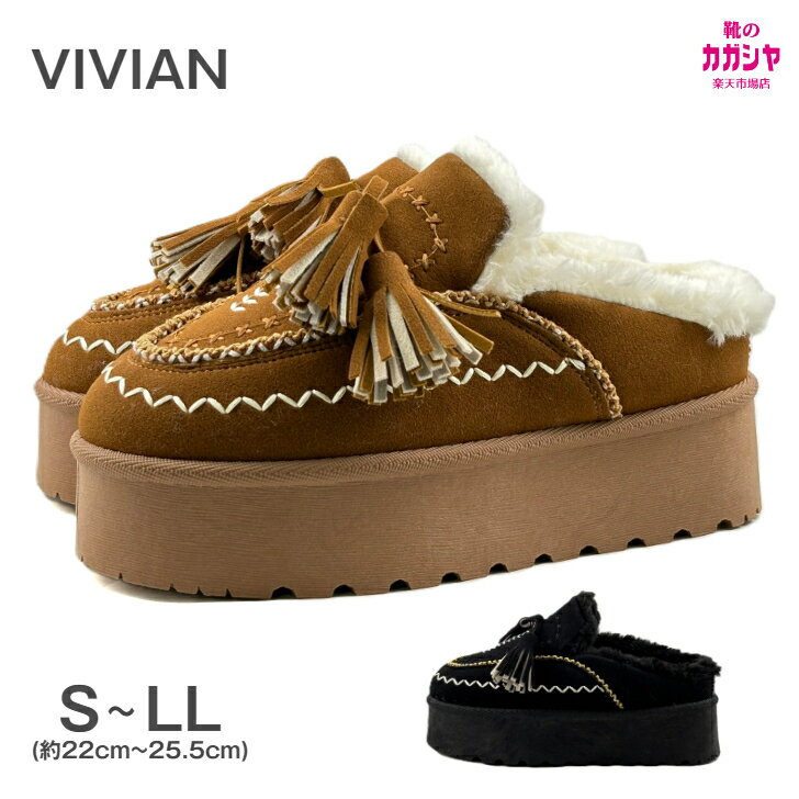 【BLACK FRIDAYエントリーでP5倍】VIVIAN もふぽか 厚底 タッセル サボ ムートン・・・