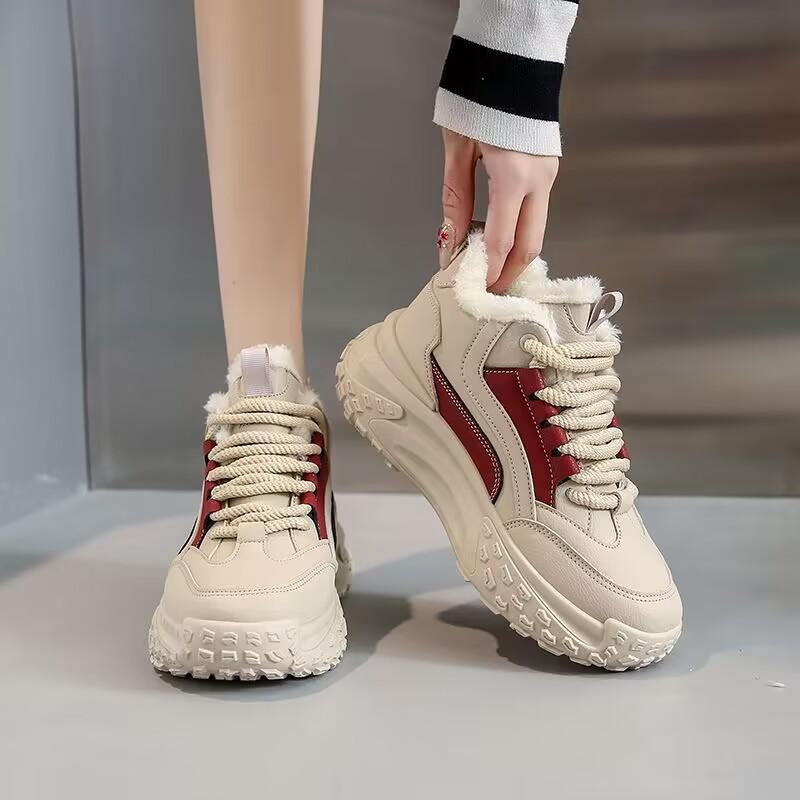 靴 レディース 厚底スニーカー 秋冬 防寒 暖かい ラウンドトゥ 紐 コットン 中敷き 普段使い カ・・・