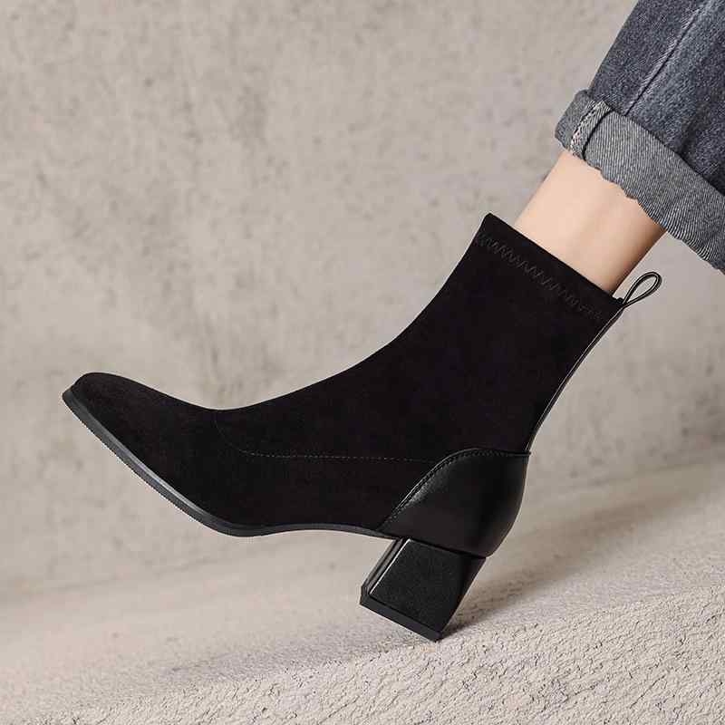 ブーツ レディース ストレッチ スエード調 サイドジップ ニーハイ ロング丈 ソックスタイプ チャン・・・