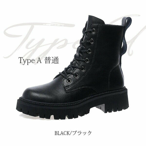 ショート ブーツ レディース レースアップ ブーツ シューズ 黒 ショート サイドジップ ブーティ編・・・