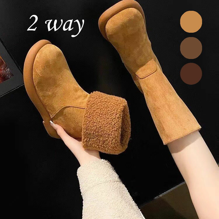 ムートンブーツ 2WAY レディース ショートブーツ ぺたんこタイプ インヒールタイプ 裏起毛 防寒・・・