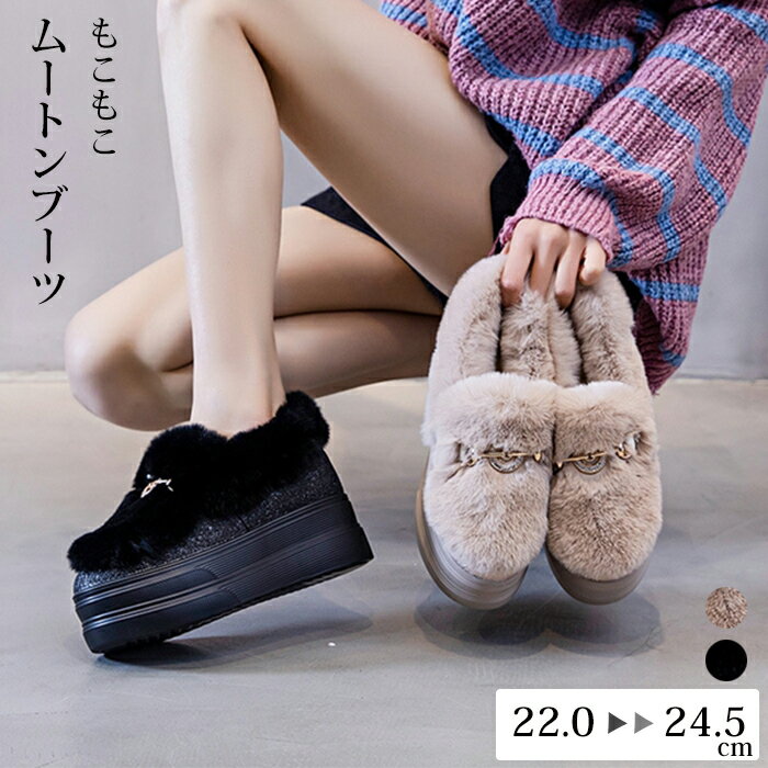 ムートンブーツ レディース ショートブーツ 厚底 歩きやすい スノーブーツ レディース インヒール4・・・