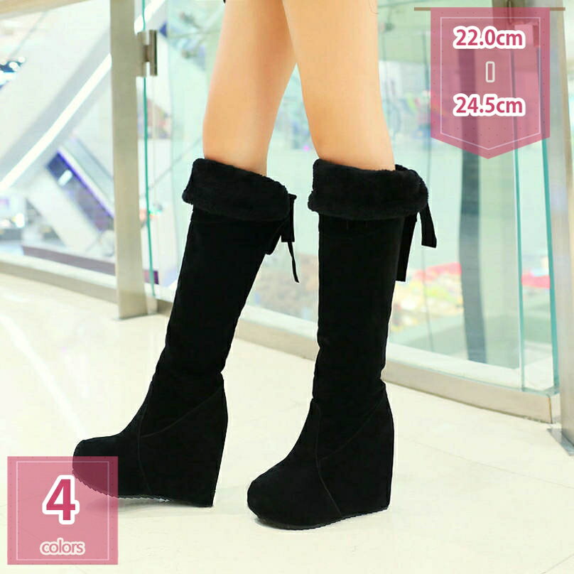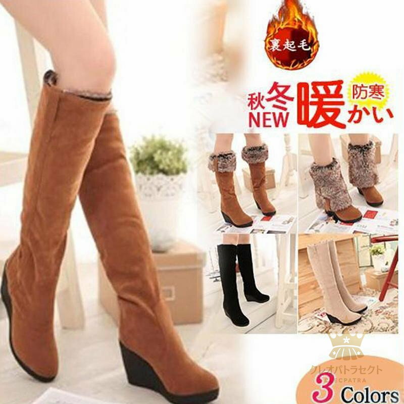 レディース ロングブーツ ムートン ブーツ インヒール ウェッジソール ムートンブーツ ハイヒール ・・・
