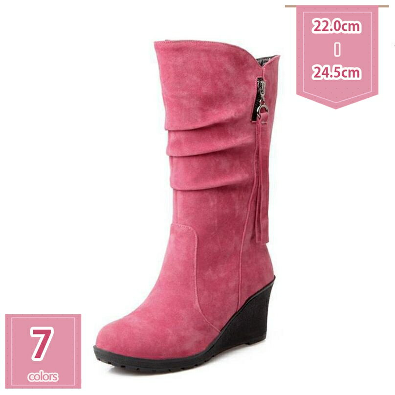 スノーブーツ スエード ムートンブーツ レディース ロング丈 裏ボア ロングブーツ ウェッジソール ・・・