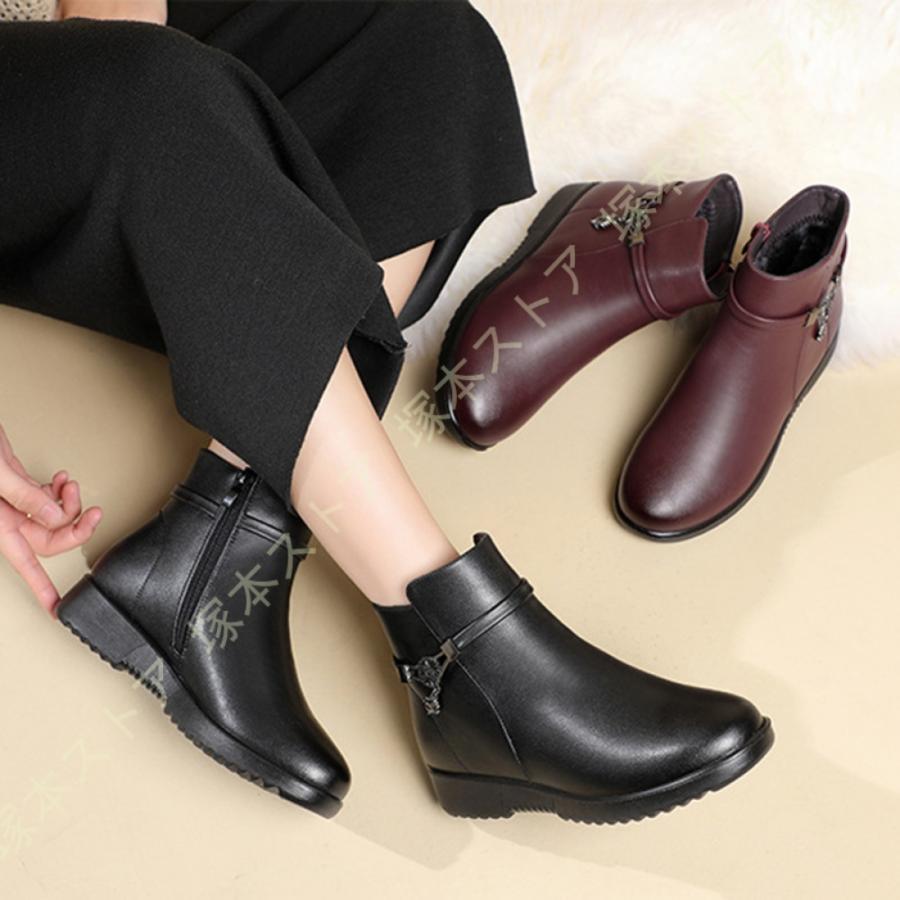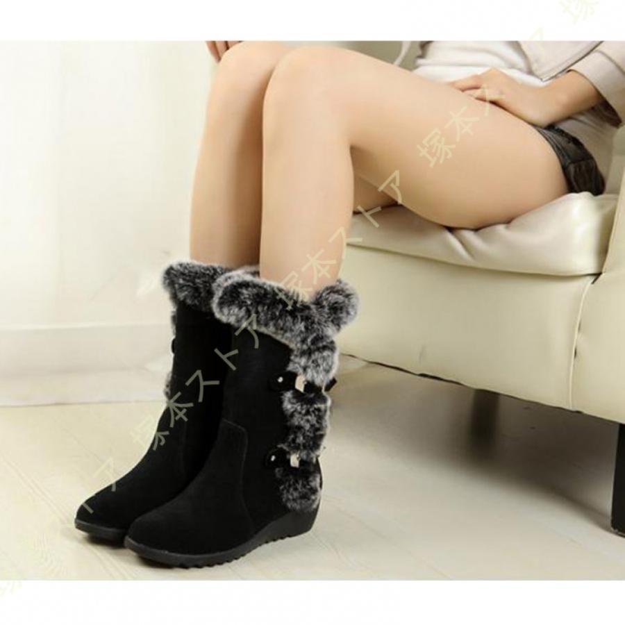 レディース スノーブーツ ショートブーツ 厚底 ムートンブーツ インヒール ボア付き サイドジップ ・・・