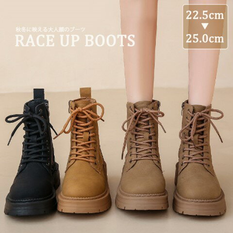 ショートブーツ レディースブーツ ワークブーツ 厚底 靴 レースアップ【大きいサイズ レディース 雪・・・
