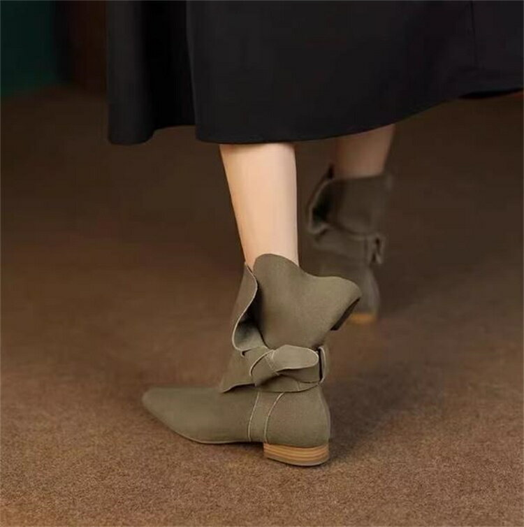 フラットシューズ ショートブーツ レトロ デニムブーツ 歩きやすい【大きいサイズ レディース 雪道 ・・・