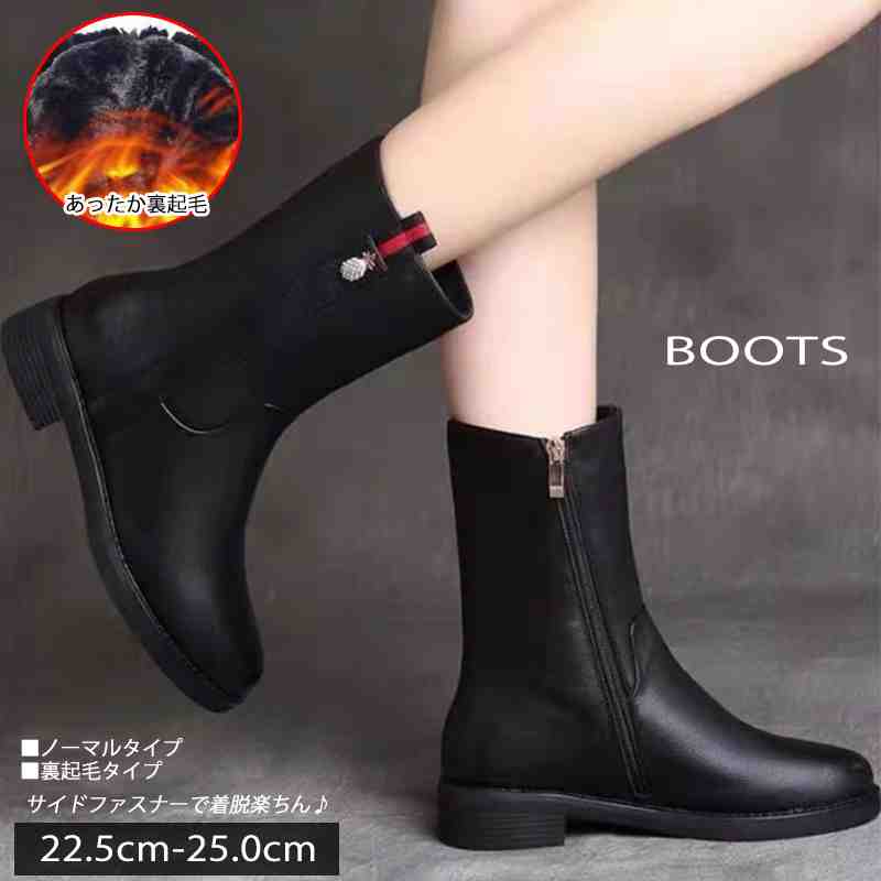 ブーツ 裏起毛 ショート 太ヒール 裏起毛 美脚 脚長 スタイルアップ ミドル【大きいサイズ レディ・・・