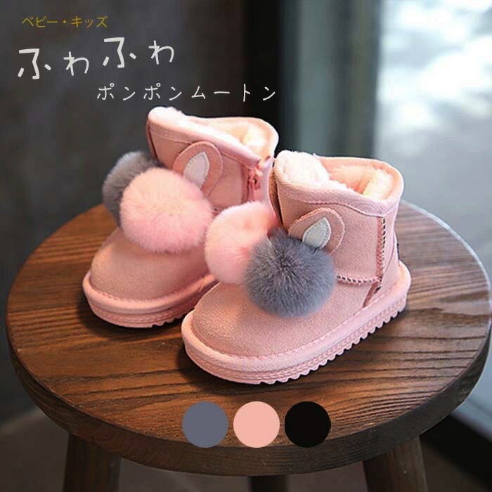 子供靴 可愛い ポンポン ムートンブーツ 女の子 サイズ豊富