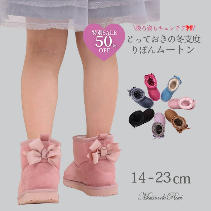 【即納・OUTLET】リボン付きムートンブーツ キッズ 女の子 子供靴 こども靴 子ども靴 プチプラ・・・