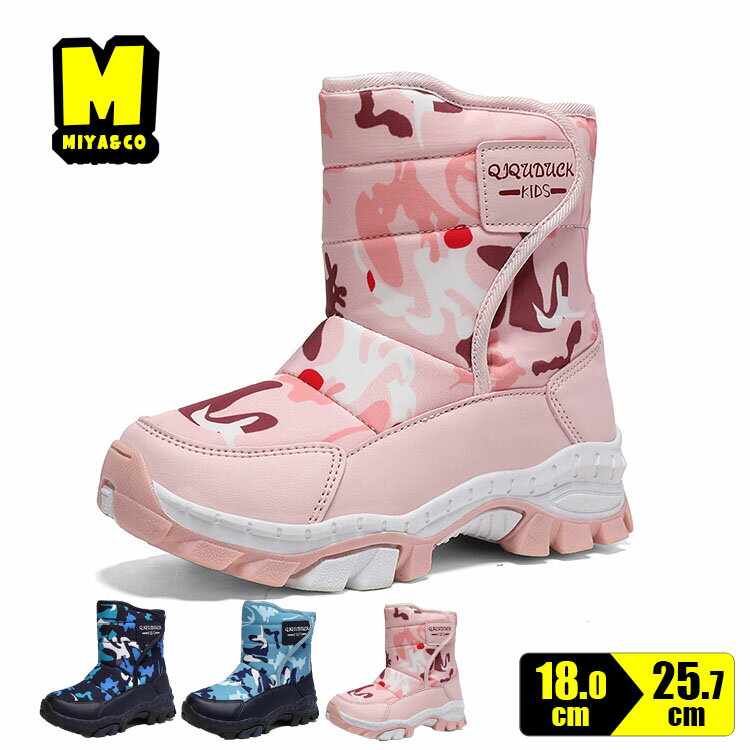 柄 スノーブーツ ジュニア 子ども靴 通学用 アウトドア 男の子 女の子 雪地ブーツ 滑り止め ウィ・・・