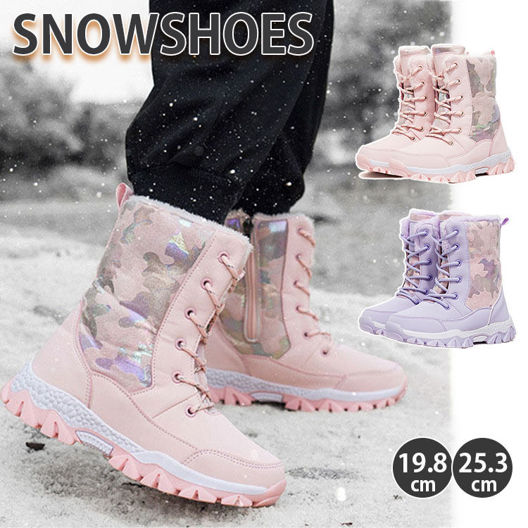 スノーブーツ キッズ 滑らない 北海道 スパイク付き ロングブーツ 女の子 ピンク 紫 スノーシュー・・・