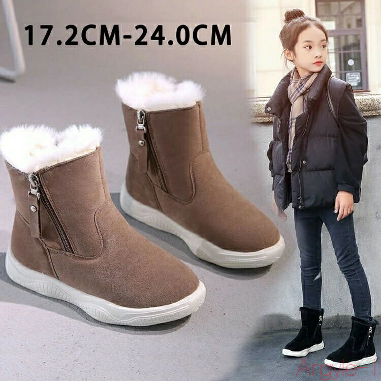 ボアブーツ 防水 キッズ 女の子 裏 無地 ミドルブーツ 雪遊び 送料無料 裏起毛 ジュニア カジュ・・・