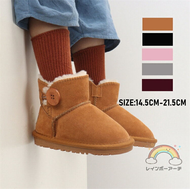【高品質牛革/キッズ〜大人サイズまで展開】16.5cm-24.8cm キッズ ムートンブーツ 子供靴・・・