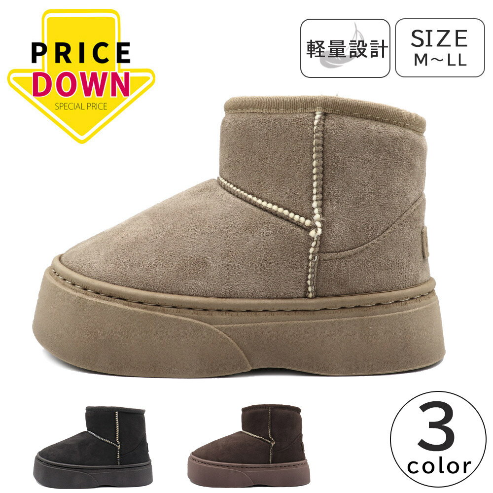 ムートンブーツ ショートブーツ 防寒ブーツ 厚底 スリッポン スエード レディース ボア ショートブ・・・