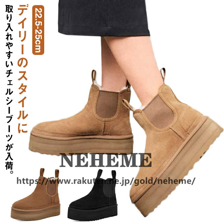 ヒール5cm チェルシー ブーツ レディース 厚底 プラットフォーム チェルシー ブーツ ムートンブ・・・